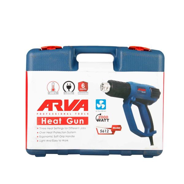 سشوار چه صنعتی باشد و چه خانگی به وسیله ای گفته می شود که انرژی الکتریکی را به باد گرم تبدیل می کند. تفاوت سشوار صنعتی با سایر سشوار ها قدرت گرمایش بالاتر آن است. سشوار صنعتی آروا مدل ۵۶۱۲ با توان ۲۰۰۰ وات یک دستگاه پرقدرت، با دوام و کارایی بالا است که در مشاغل گوناگون کاربرد های فراوانی دارد. این دستگاه به همراه کیف BMC به بازار عرضه می شود و همراه آن ۴ عدد نازل، دفترچه راهنما و کارت گارانتی است.